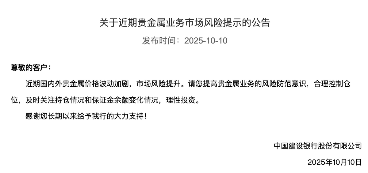 【公共网财经报谈 记者谭雅文】10月14日,海外金价冲破4170好意思元/盎司后回落。本月金价继续改进高,激勉了商场投资关爱。在此配景下,银行业密集发布风险领导,并入部属手对贵金属业务进行一轮调养。